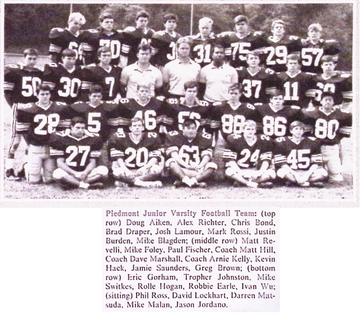 Junior Varsity Football Team Boys (1988-89)