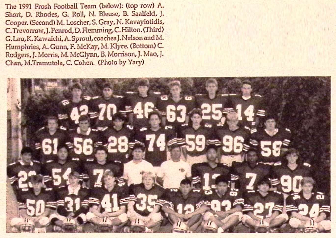 Frosh Roster Boys (1991-92)