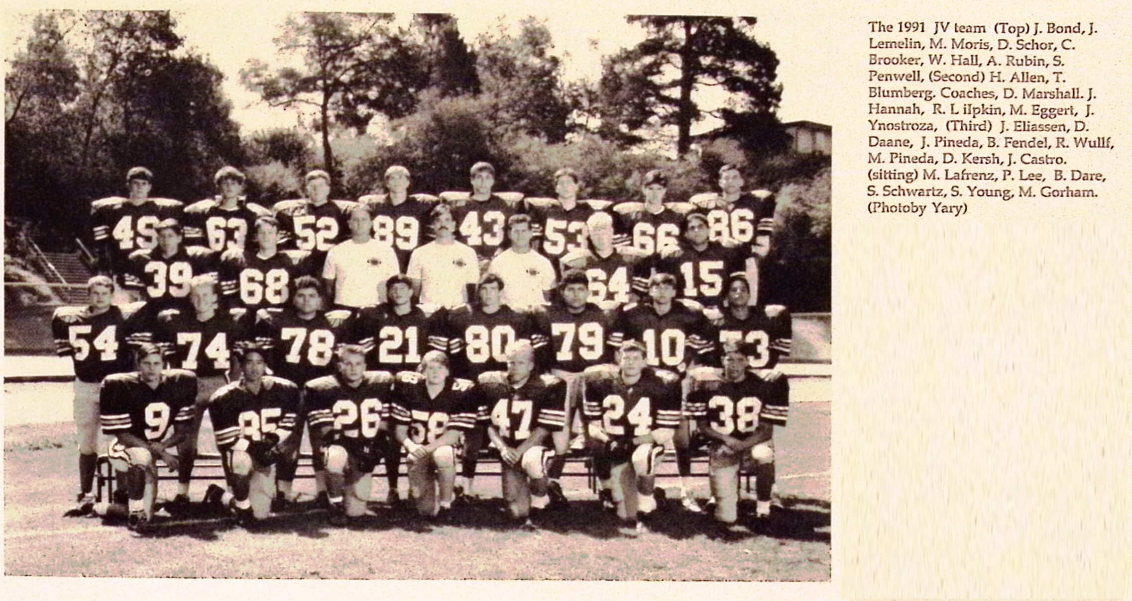 Junior Varsity Football Team Boys (1991-92)